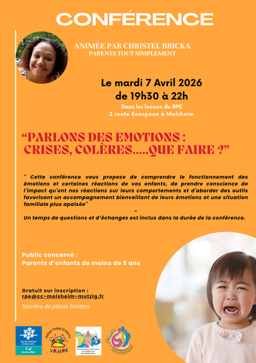 "Cette conférence vous propose de comprendre le fonctionnement des émotions et certaines réactions de vos enfants, de prendre conscience de l'impact qu'ont nos réactions sur leurs comportements et d'aborder des outils favorisant un accompagnement bienveillant de leurs émotions et une situation familiale plus apaisée."